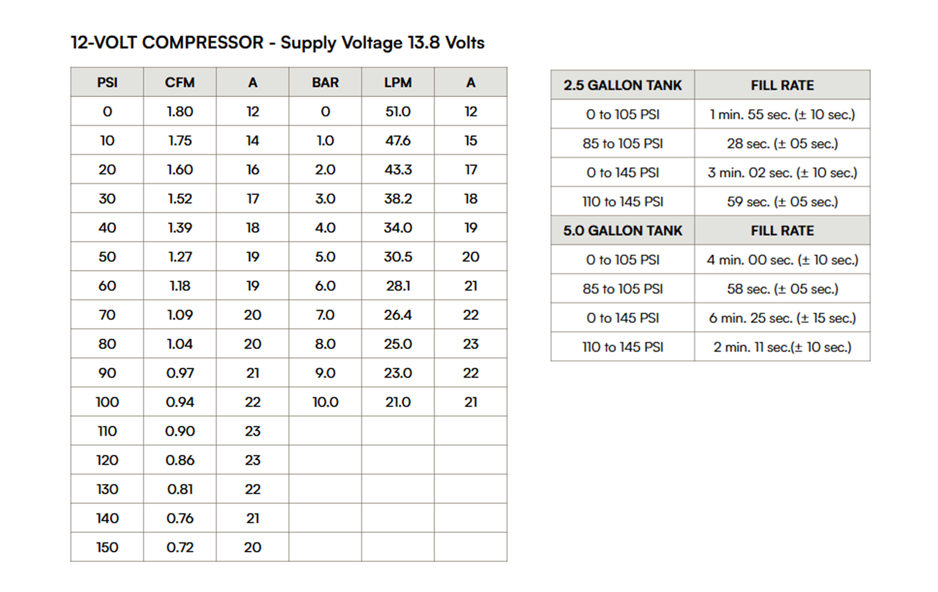 | Max. Air Tank Size | 5.0 Gallon |
